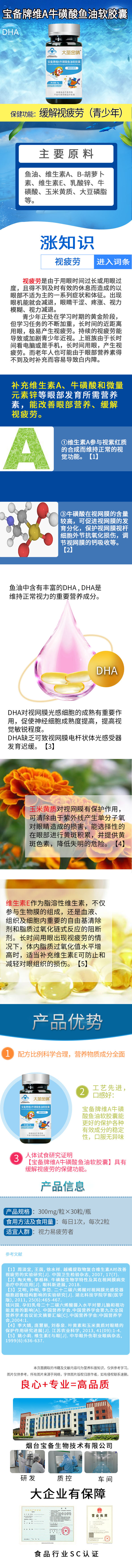 【功效成分及含量】:魚油、維生素A、β-胡蘿卜素、維生素E、乳酸鋅、牛磺酸、玉米黃質(zhì)、大豆磷脂等
