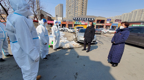 王雷總經(jīng)理與黨委委員、副總經(jīng)理孫勐,副總經(jīng)理高東升,來到寬城區(qū)站前街道與團(tuán)山街道,慰問正在工作的第八、九志愿者小組。第八小組是集團(tuán)志愿者隊(duì)伍中唯一肩負(fù)夜班值守任務(wù)的小組,每人每天室外工作長達(dá)十幾個小時,盡管天氣寒冷,但小組每位成員都恪盡職守,保證了任務(wù)順利推進(jìn);第九小組連續(xù)奮戰(zhàn)十多天,沒有一人掉隊(duì),志愿者關(guān)澤中、孟令佳夫婦為了能夠更好進(jìn)行志愿服務(wù),把一歲多的孩子委托給父母照顧,雙雙奔赴防控一線。王雷總經(jīng)理仔細(xì)詢問志愿者們的身體狀況和輪休安排,叮囑大家勞逸結(jié)合,注意休息。