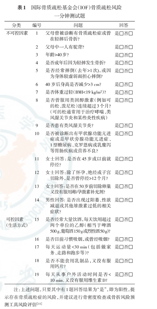 不信?分享一套 IOF 骨質(zhì)疏松風(fēng)險測試題,不妨花一分鐘自測一下[3]:
