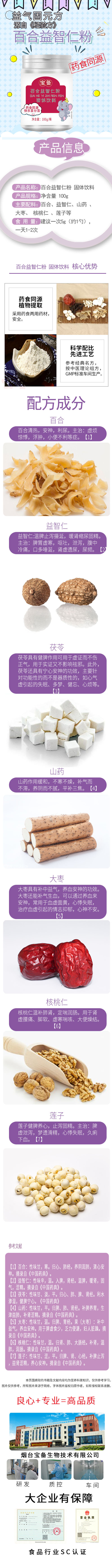 【主要原料】:百合、益智仁、山藥、大棗核桃仁、蓮子等